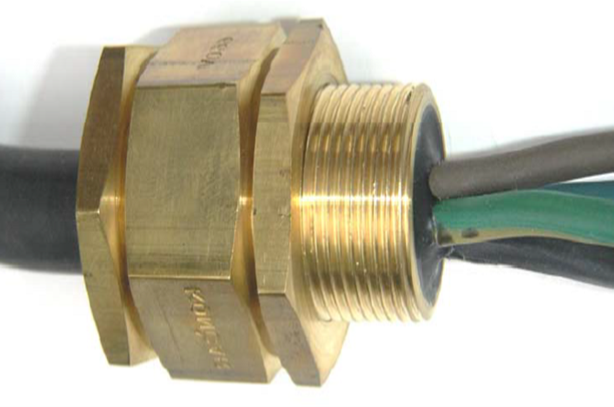 Exemplo de bucha de passagem de cabos selada de fábrica (bushing) do tipo “à prova de explosão” (Ex “d”) para cabos de circuitos de instrumentação, força, controle, telecomunicações e automação (incluindo fibras ópticas)