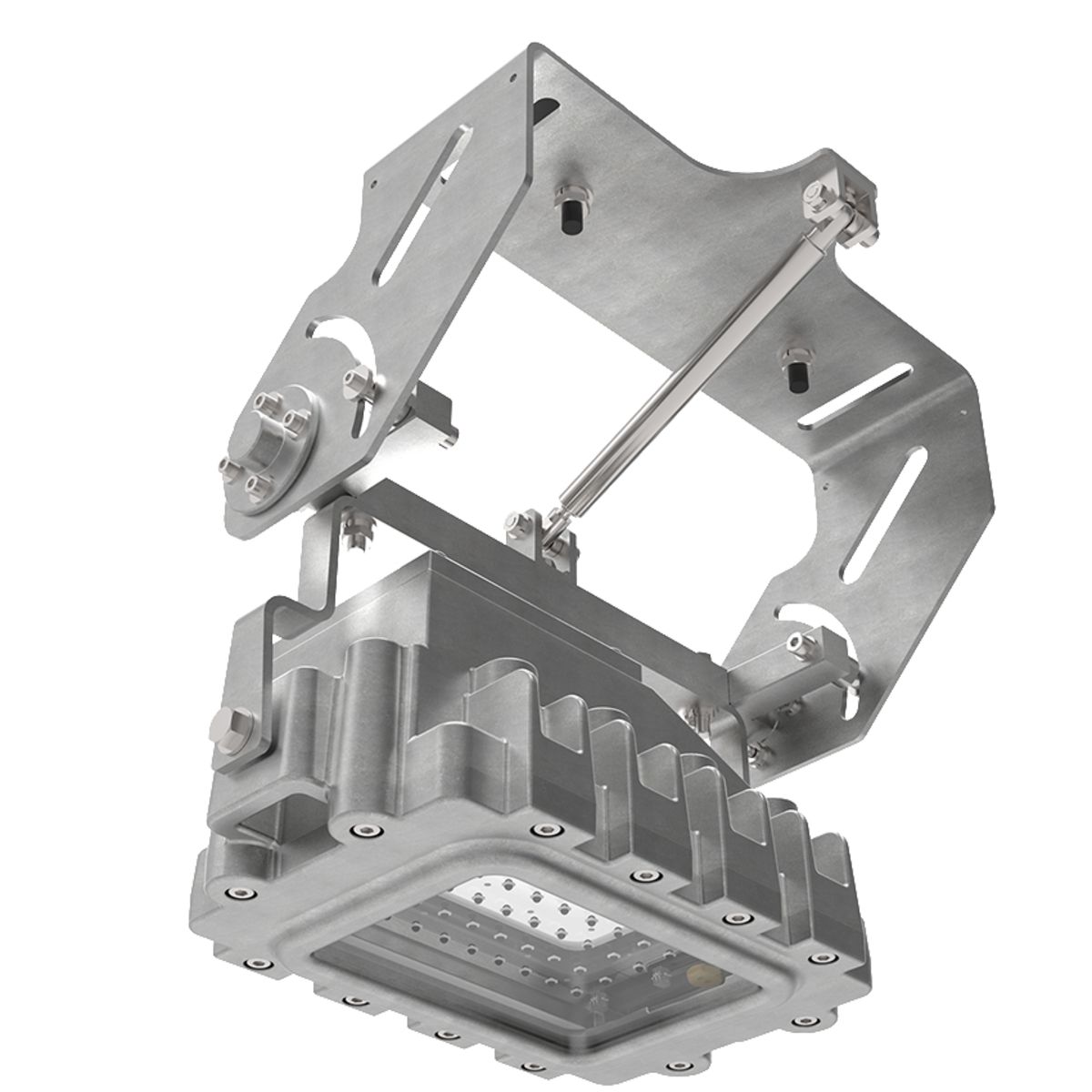 Pode ser instalado com o “Crane Damper Bracket”, um suporte de amortecimento para guindastes ou superfícies trepidantes e móveis, para minimizar a experiência de vibrações quando o ScotiaEx é instalado em guindastes offshore/marítimos, fazendo com que a luminária fique estável em serviço.